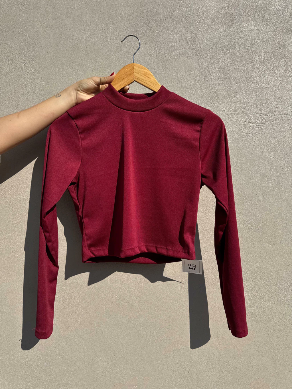 Remera media polera cortita. Tela brillosa